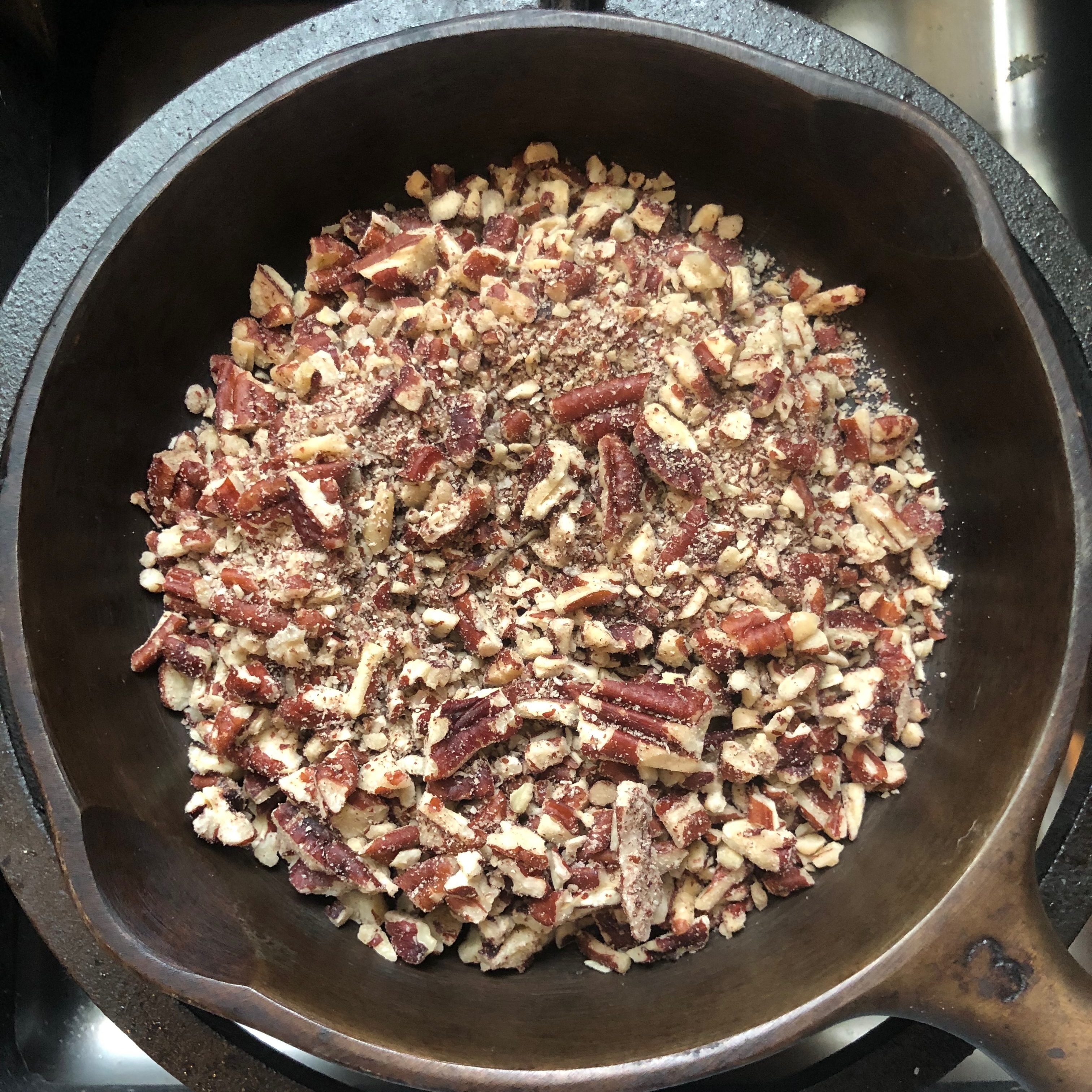- Chop nuts into small pieces (you can decide on the size based on how much texture you want in the bread) and toast in a dry skillet over low heat until fragrant and lightly browned. Keep an eye on it, nuts can burn in a second.