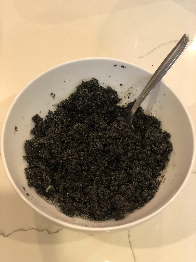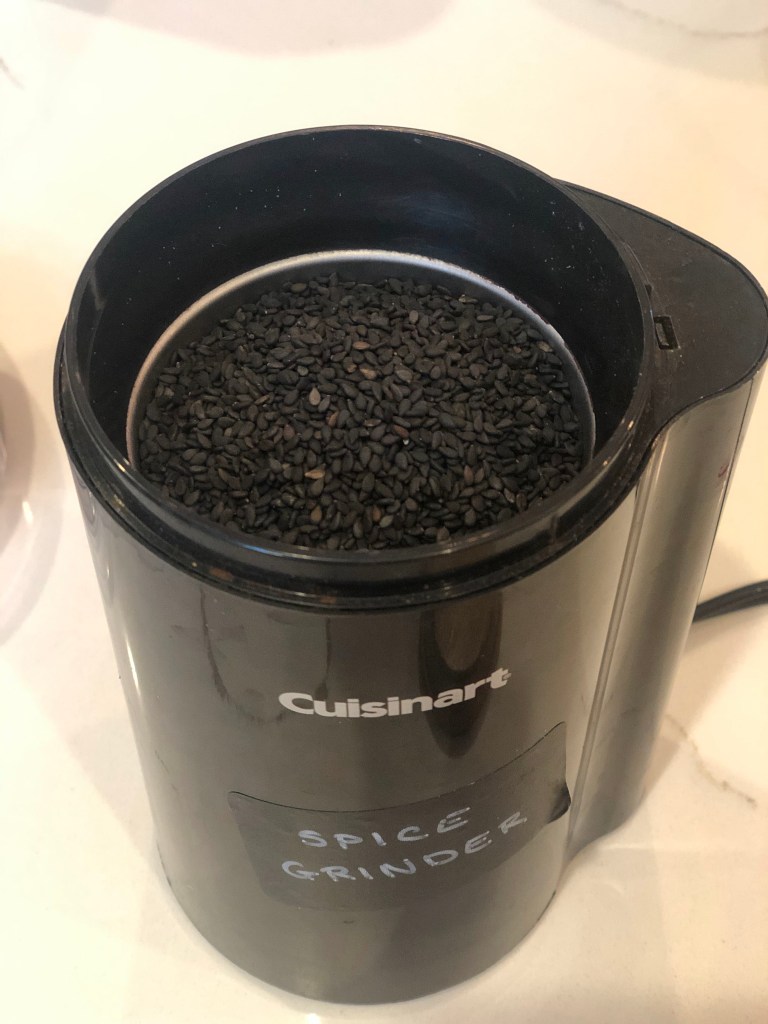- Make the filling: In a food processor or a clean coffee grinder, blitz the sesame seeds until they are sandy. Mix with remaining filling ingredients and set aside.